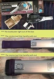 The black+decker HHVI325JR22 Dust buster cordless lithium hand vacuum, ink Blue, is ideal for picking up dirt and debris in your everyday life. The lithium technology provides strong suction and extended run time. It has a washable bowl (20.6Oz) and filter which allows for thorough cleaning between Jobs. The translucent, bagless dirt bowl makes it easy to see dirt and easy to empty. This vac has a rotating nozzle for a comfortable hand position when accessing hard to reach areas, along with an extendable crevice tool that provides access to hard to reach areas and a flip-up brush which allows you to dust and vacuum upholstery. The cyclonic action helps to keep the filter clean and suction strong. 2.5 amp hours. This vac has a lightweight an